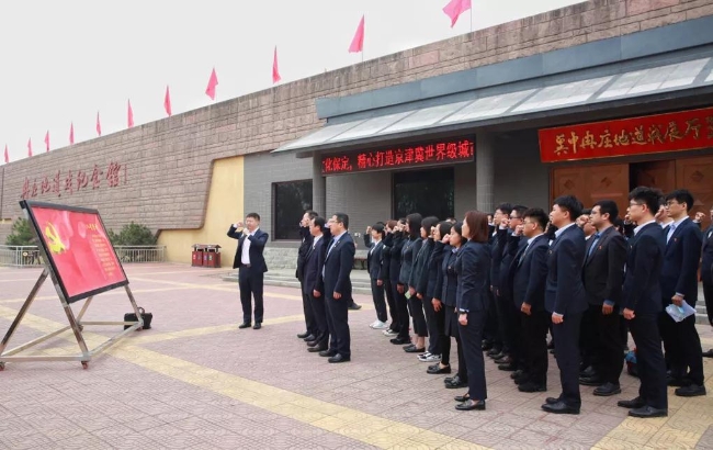 房地產公司黨委扎實開展黨史學習教育。圖為該公司黨員在冀中冉莊地道戰紀念館重溫入黨誓詞