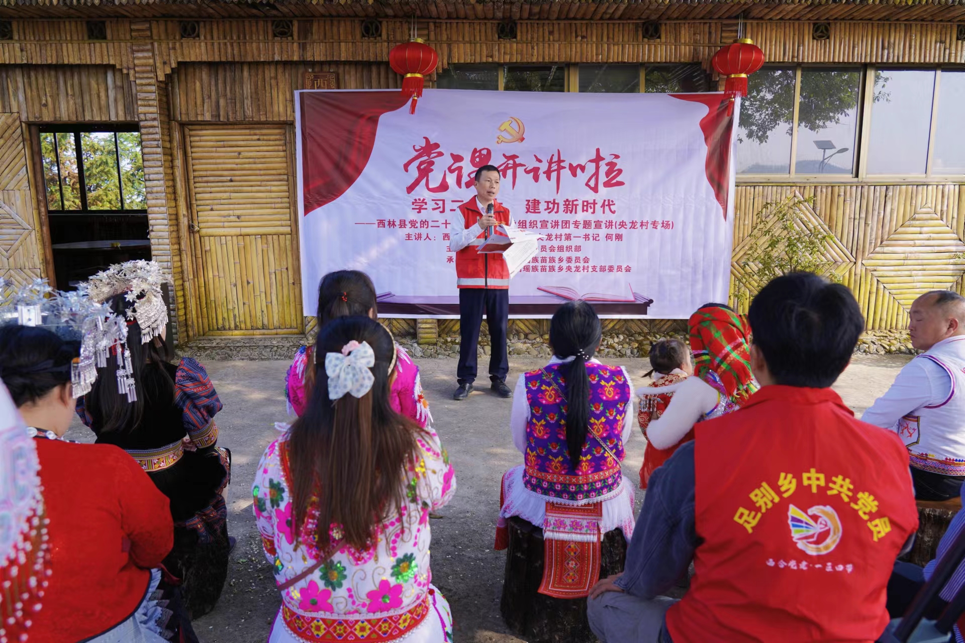 近日,廣西百色市西林縣黨的二十大精神基層黨組織宣講團成員、中國能建葛洲壩廣西工程局掛職西林縣足別瑤族苗族鄉央龍村第一書記何剛以“扎實推進宜居宜業和美鄉村建設”為題,給央龍村“村兩委”干部等40余名黨員上了一節精彩的黨課。