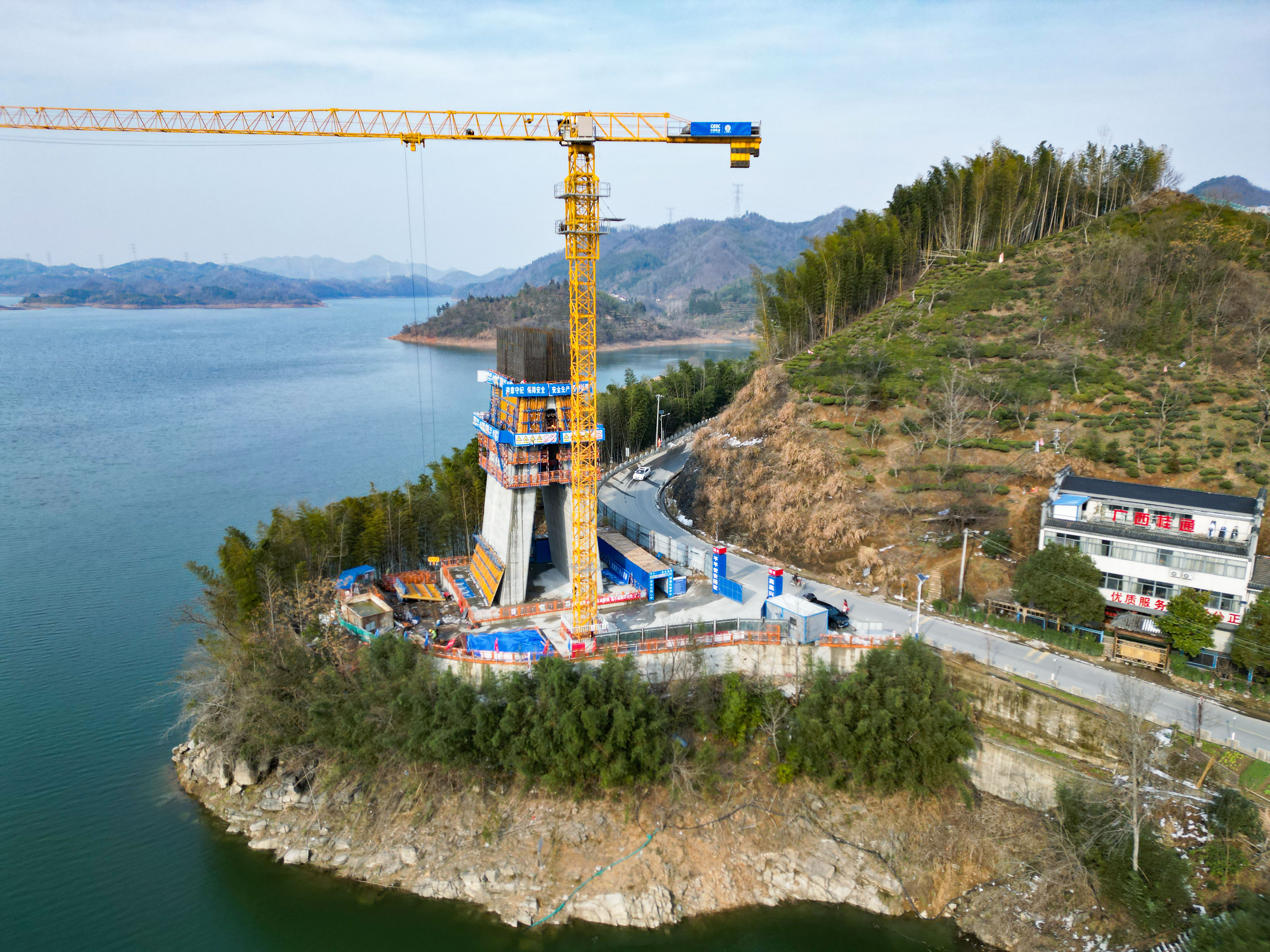 春山如黛,碧水含煙。在皖西大別山深處,響洪甸水庫西南角,中國能建葛洲壩集團投資建設的和襄高速六安段鮮花湖特大橋正拔節生長,為項目年底如期通車提供堅實保障。